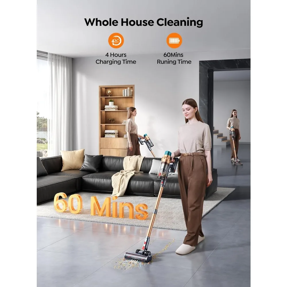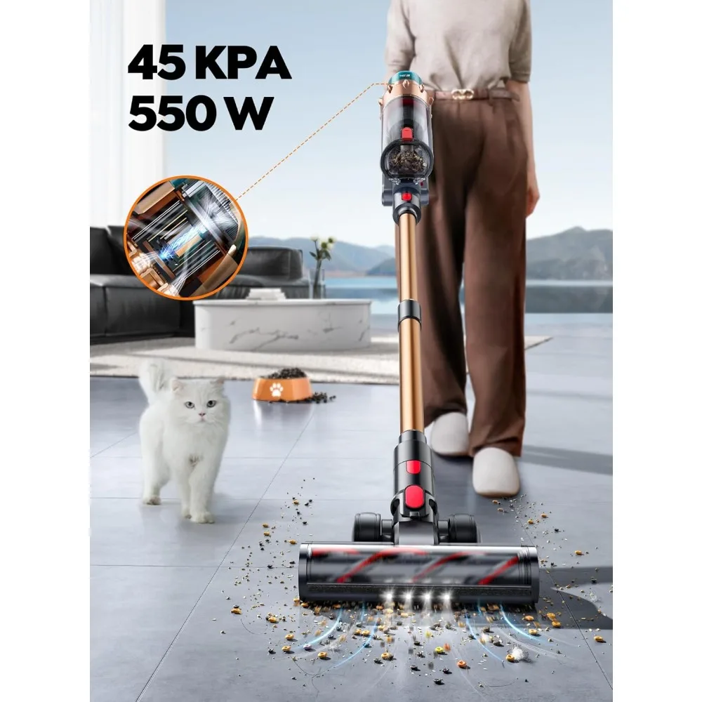 [Upgraded 550W 45KPA Powerful Suction] The cordless vacuum cleaner is equipped with a market-leading 550W brushless motor, which can provide 45KPA powerful suction to pick up all surface debris and deeply embedded dirt, beating 95% of the vacuum cleaners on the market!